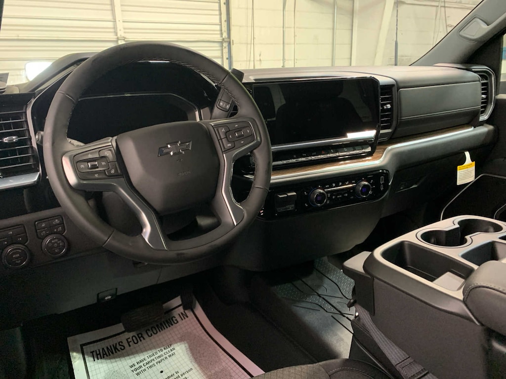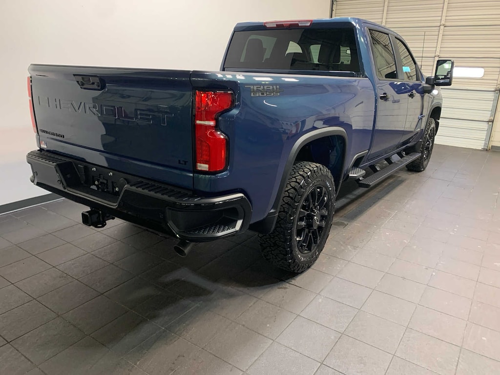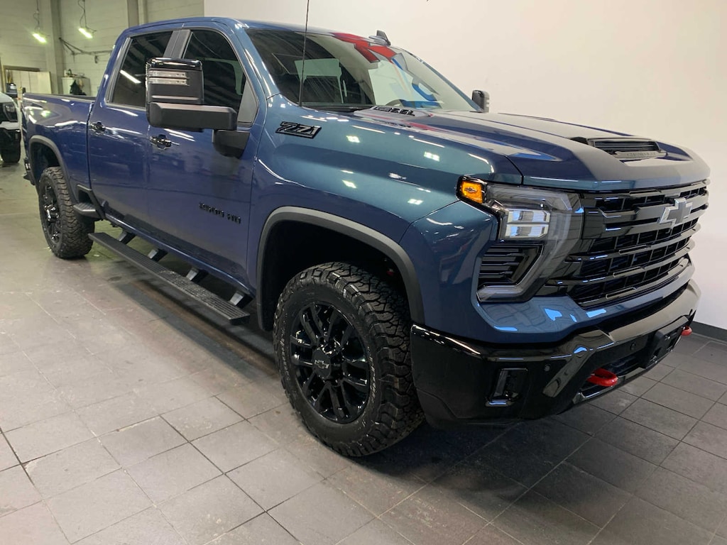 Includes black grille bar with "Chevy Black Bow Tie", Black grille inserts, (SRI) 20" High gloss Black painted wheels, (VB5) High Gloss Black painted front bumper, (VT5) High Gloss Black painted rear bumper, (UGA) Red Tow Hooks, (QFG) LT275/65R20 BF Goodrich off-road tires, Black skid plate, Black badging, Black bowtie on horn pad, (DP6) High Gloss Black mirror caps, Black hood vent surround, High Gloss Black door handles and (CGN) Chevytec spray-on bedliner. Includes high-intensity LED headlamps and (DWI) trailer mirrors. includes (UD5) Front and Rear Park Assist, (UKV) Trailer Side Blind Zone Alert, (UFG) Rear Cross Traffic Alert, (UV2) HD Surround Vision, (UVN) Bed View Camera and (TRG) Trailer Camera Provisions (Includes (UET) Trailering App. includes (UF2) Cargo bed LED lighting, (CJ2) dual-zone automatic climate control, (A2X) 10-way power driver seat including power lumbar, (N37) manual tilt/telescoping steering column, (T3U) LED fog lamps, includes (BTV) Remote Start, (UTJ) Theft Deterrent System and (C49) rear-window defogger, includes (Z71) Off-Road suspension with off-road tuned twin tube Rancho shocks, (JHD) Hill Descent Control and (NZZ) skid plates (transfer case and oil pan) (Includes (QXT) LT265/70R17 all-terrain, blackwall tires and molded in color Black grille. lower convex mirrors, turn signal indicators, puddle lamps, (U12) perimeter lighting, auxiliary lighting, power folding/manual extending (extends 3.31" [84.25mm]) Includes (DD8) auto-dimming rearview mirror which can be upgraded to (DRZ) Rear Camera Mirror.), includes (KA1) Heated driver and passenger seats and (KI3) Heated steering wheel, with Google built-in compatibility (select service plan required, terms and limitations apply) including navigation capability, 13.4" diagonal HD color touchscreen, includes multi-touch display, AM/FM stereo, Bluetooth® streaming audio for music and most phones; featuring Wireless Apple CarPlay® and Wireless Android Auto® capability for compatible phones, advanced voice recognition, in-vehicle apps, personalized profiles for infotainment and vehicle settings (STD), with Direct Injection and Variable Valve Timing, gasoline, (401 hp [299 kW] @ 5200 rpm, 464 lb-ft of torque [629 N-m] @ 4000 rpm) (STD), (STD). Chevrolet LT with Lakeshore Blue Metallic exterior and Jet Black interior features a 8 Cylinder Engine with 401 HP at 5200 RPM*.