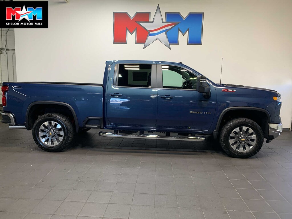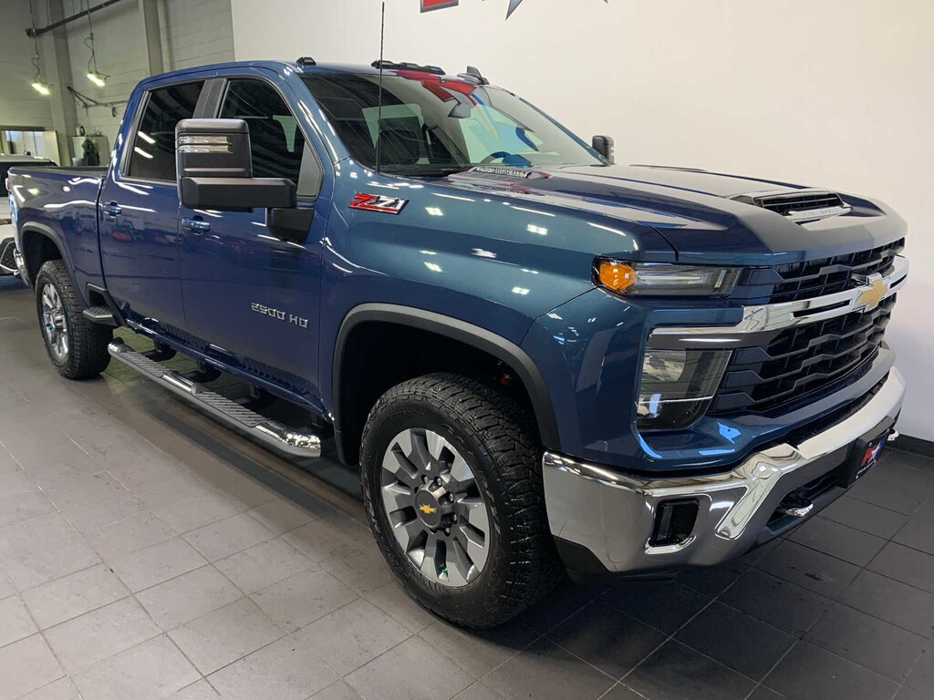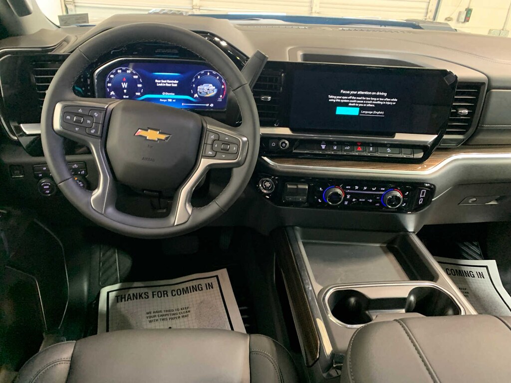 B20-Diesel compatible, (470 hp [350.5 kW] @ 2800 rpm, 975 lb-ft of torque [1322 Nm] @ 1600 rpm), includes (Q86) 20" machined aluminum wheels with Grazen metallic painted accents, (QF9) LT275/65R20 all-terrain, blackwall tires, (VLQ) Chrome recovery hooks and (VXJ) 4" Chrome assist steps, LPO, includes (UF2) Cargo bed LED lighting, (CJ2) dual-zone automatic climate control, (A2X) 10-way power driver seat including power lumbar, (N37) manual tilt/telescoping steering column, (T3U) LED fog lamps, with center console, for Crew Cab and Double Cab models, includes (PZ8) Hitch Guidance with Hitch View, (UET) Trailering App, (A48) rear sliding power window and (UG1) Universal Home Remote. Includes (R7O) Cloth Rear Seat with Storage Package. includes (BTV) Remote Start, (UTJ) Theft Deterrent System and (C49) rear-window defogger, ADAPTIVE CRUISE CONTROL, includes (KA1) Heated driver and passenger seats and (KI3) Heated steering wheel, with Google built-in compatibility (select service plan required, terms and limitations apply) including navigation capability, 13.4" diagonal HD color touchscreen, includes multi-touch display, AM/FM stereo, Bluetooth® streaming audio for music and most phones; featuring Wireless Apple CarPlay® and Wireless Android Auto® capability for compatible phones, advanced voice recognition, in-vehicle apps, personalized profiles for infotainment and vehicle settings (STD), TRANSMISSION, 10-SPEED AUTOMATIC, 60/40 Split rear seat with center armrest, right, and left seat back storage, and under seat jack storage (Crew Cabs Only) Rear seat leather appointed. Chevrolet LT with Lakeshore Blue Metallic exterior and Jet Black interior features a 8 Cylinder Engine with 470 HP at 2800 RPM*. Approx. Original Base Sticker Price: $76,600*.