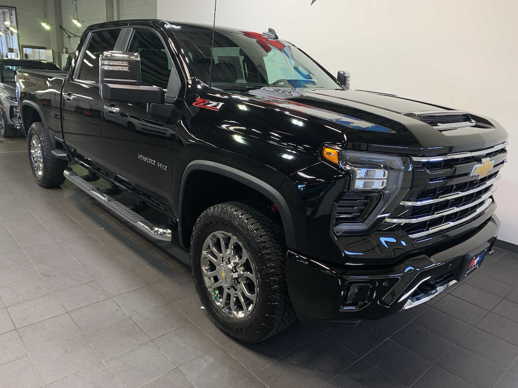 includes body-color grille bar with Black mesh with Chrome grille accents and Z71 badge, Chrome skid plate, (VB5) body-color front bumper, (VT5) body-color rear bumper, (WR4) 20" Bright finish aluminum wheels, (QF9) LT275/65R20 all-terrain, blackwall tires and (CGN) Chevytec spray-on bedliner Includes, high-intensity LED headlamps, (DWI) trailer mirrors, stainless beltline moldings. (E20) Chrome door handles, (DP9) Chrome mirror caps, Chrome hood vent and (VXJ) 4" Chrome assist steps, LPO. includes (UD5) Front and Rear Park Assist, (UKV) Trailer Side Blind Zone Alert, (UFG) Rear Cross Traffic Alert, (UV2) HD Surround Vision, (UVN) Bed View Camera and (TRG) Trailer Camera Provisions (Includes (UET) Trailering App. includes (UF2) Cargo bed LED lighting, (CJ2) dual-zone automatic climate control, (A2X) 10-way power driver seat including power lumbar, (N37) manual tilt/telescoping steering column, (T3U) LED fog lamps, with center console, for Crew Cab and Double Cab models, includes (PZ8) Hitch Guidance with Hitch View, (UET) Trailering App, (A48) rear sliding power window and (UG1) Universal Home Remote. Includes (R7O) Cloth Rear Seat with Storage Package. includes (BTV) Remote Start, (UTJ) Theft Deterrent System and (C49) rear-window defogger, ADAPTIVE CRUISE CONTROL, lower convex mirrors, turn signal indicators, puddle lamps, (U12) perimeter lighting, auxiliary lighting, power folding/manual extending (extends 3.31" [84.25mm]) Includes (DD8) auto-dimming rearview mirror which can be upgraded to (DRZ) Rear Camera Mirror.), includes (KA1) Heated driver and passenger seats and (KI3) Heated steering wheel, with Google built-in compatibility (select service plan required, terms and limitations apply) including navigation capability, 13.4" diagonal HD color touchscreen, includes multi-touch display, AM/FM stereo, Bluetooth® streaming audio for music and most phones; featuring Wireless Apple CarPlay® and Wireless Android Auto® capability for compatible phones, advanced voice recognition, in-vehicle apps, personalized profiles for infotainment and vehicle settings (STD), with Direct Injection and Variable Valve Timing, gasoline, (401 hp [299 kW] @ 5200 rpm, 464 lb-ft of torque [629 N-m] @ 4000 rpm) (STD), (STD), 60/40 Split rear seat with center armrest, right, and left seat back storage, and under seat jack storage (Crew Cabs Only) Rear seat leather appointed. Chevrolet LT with Black exterior and Jet Black interior features a 8 Cylinder Engine with 401 HP at 5200 RPM*.