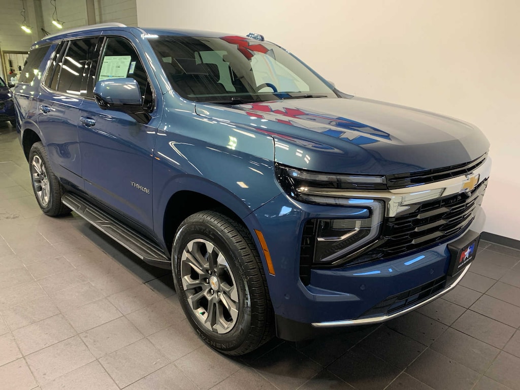 WHEELS, 20" X 9" (50.8 CM X 22.9 CM) MACHINED ALUMINUM WIT CHARCOAL POCKETS, includes (RIA) 1st and 2nd row all-weather floor liners, LPO, (RIB) 3rd row all-weather floor liner, LPO and (CAV) all-weather cargo mat, LPO (dealer-installed), with Dynamic Fuel Management, Direct Injection and Variable Valve Timing, includes aluminum block construction (355 hp [265 kW] @ 5600 rpm, 383 lb-ft of torque [518 Nm] @ 4100 rpm) (STD), electronically controlled with overdrive, includes Traction Select System including tow/haul (STD), with Google built-in compatibility (select service plan required, terms and limitations apply), including navigation capability, connected apps, personalized profiles for each driver's settings, Natural Voice Recognition and Phone Integration (STD). Chevrolet LS with Lakeshore Blue Metallic exterior and Jet Black interior features a 8 Cylinder Engine with 355 HP at 5600 RPM*.