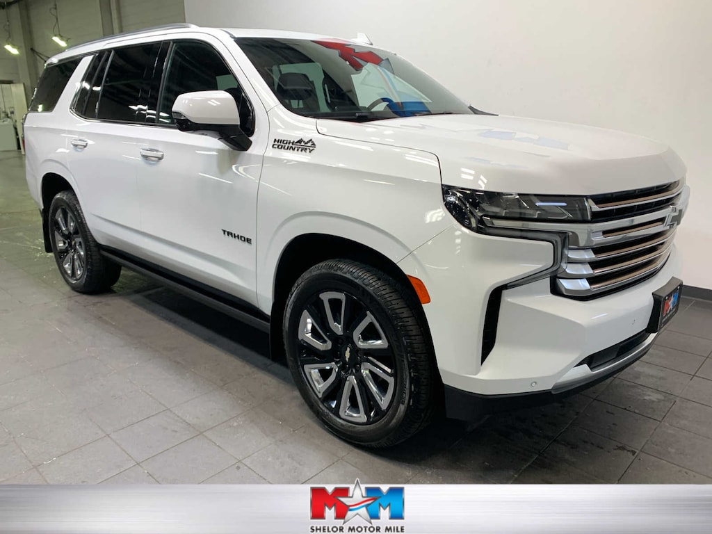 Great Shape. Third Row Seat, Heated Leather Seats, Nav System, Heated Rear Seat, Power Liftgate, Quad Bucket Seats, Hitch, LPO, 22" (55.9 CM) BLACK GLOSS WHEELS WITH CHROME INSERTS, ADVANCED TRAILERING PACKAGE, PREMIUM PACKAGE SEE MORE!======KEY FEATURES INCLUDE: Leather Seating, Third Row Seat, Quad Bucket Seats, Power Liftgate, Heated Driver Seat, Heated Rear Seat, Cooled Driver Seat, Back-Up Camera, Premium Sound System, Onboard Communications System, Trailer Hitch, Dual Zone A/C, Cross-Traffic Alert, Lane Keeping Assist, WiFi Hotspot Rear Air, Satellite Radio, Keyless Entry, Privacy Glass, Remote Trunk Release. ======OPTION PACKAGES: includes (NHT) Max Trailering Package, (C3U) Panoramic power sunroof and (KSG) Adaptive Cruise Control (Also includes (B3L) power-retractable assist steps with perimeter lighting. LPO wheels will come with 4 steel 22" wheels from the factory with alignment specs set to 22" LPO wheel selected (dealer-installed) Includes factory-installed wheel locks and not (SFE) wheel locks, LPO. (dealer-installed), AM/FM stereo, Bluetooth audio streaming for 2 active devices, Apple CarPlay and Android Auto capable, enhanced voice recognition, additional memory for in-vehicle apps, cloud connected personalization for select infotainment and vehicle settings. Subscription required for enhanced and connected services after trial period. (STD), with Dynamic Fuel Management, Direct Injection and Variable Valve Timing, includes aluminum block construction (420 hp [313 kW] @ 5600 rpm, 460 lb-ft of torque [624 Nm] @ 4100 rpm) (STD), electronically controlled with overdrive, includes Traction Select System including tow/haul (Most vehicles built on or after 6-7-2021 with a V8 engine will have (NSS) Not Equipped with Automatic Stop/Start, which removes Automatic Stop/Start, Engine control stop/start disable button and its content.) (STD), includes (PZ8) Hitch Guidance with Hitch View, (JL1) trailer brake controller and (U1D) Advanced Trailering System Also includes (UKV) Extended Side Blind Zone Alert.). Chevrolet High Country with Summit White exterior and Jet Black interior features a 8 Cylinder Engine with 420 HP at 5600 RPM*. ======A GREAT TIME TO BUY: Was $55,589. This Tahoe is priced $5,100 below J.D. Power Retail. Great Shape ======WHO WE ARE: At Shelor Motor Mile we have a price and payment to fit any budget. Our big selection means even bigger savings! Need extra spending money? Shelor wants your vehicle, and we're paying top dollar! Tax DMV Fees & $697 processing fee are not included in vehicle prices shown and must be paid by the purchaser. Vehicle information and equipment is based off standard equipment as decoded from VIN and may vary from vehicle to vehicle.