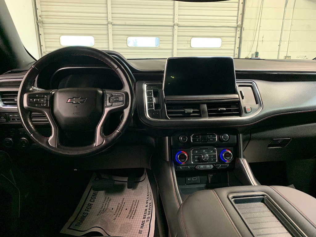 includes (WPD) Driver Alert Package content, (UV2) HD Surround Vision, (UKK) Rear Pedestrian Alert, (A45) memory settings, (DXR) outside heated power-adjustable, power-folding, body-color mirrors with driver-side auto-dimming and integrated turn signal indicators, (N38) power tilt and telescopic steering column, (KI3) heated steering wheel, (KA6) second row outboard heated seats, (ATT) second row power 60/40 split-folding bench seats and (AS8) third row power 60/40 split-folding bench seats Vehicles built prior to December 6, 2021, include heated steering wheel. Certain vehicles built on or after December 6, 2021, will be forced to include (00G) Not Equipped with Heated Steering Wheel, which removes heated steering wheel. Vehicles built prior to March 14, 2022 and after April 17, 2022, includes dual rear seat-mounted 12.6" diagonal color-touch LCD HD screens, Wi-Fi wireless projection capability, two 2-channel wireless infrared digital headphones with 2 HDMI ports on the back of the center console; compatible with Bluetooth® headphones, with express-open and close and power sunshade, SEATS, SECOND ROW BUCKET, POWER RELEASE, 10.2" diagonal HD color touchscreen, includes multi-touch display, AM/FM stereo, Bluetooth® streaming audio for music and most phones; featuring wireless Android Auto® and Apple CarPlay® capability for compatible phones, advanced voice recognition, in-vehicle apps, personalized profiles for infotainment and vehicle settings (STD), Vehicles built prior to December 6, 2021 and after March 27, 2022, include heated steering wheel. Certain vehicles built on or after December 6, 2021 through March 27, 2022, will be forced to include (00G) Not Equipped with Heated Steering Wheel, which removes heated steering wheel. See dealer for details or the window label for the features on a specific vehicle.), with Dynamic Fuel Management, Direct Injection and Variable Valve Timing, includes aluminum block construction (355 hp [265 kW] @ 5600 rpm, 383 lb-ft of torque [518 Nm] @ 4100 rpm) (STD), electronically controlled with overdrive, includes Traction Select System including tow/haul (Standard with (L84) 5.3L EcoTec3 V8 engine only or (L87) 6.2L EcoTec3 V8 engine only.) (STD), includes (UKC) Lane Change Alert with Side Blind Zone Alert and (UFG) Rear Cross Traffic Alert. Chevrolet RST with Black exterior and Jet Black/Victory Red interior features a 8 Cylinder Engine with 355 HP at 5600 RPM*.