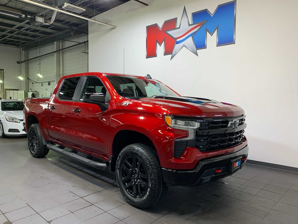 (355 hp [265 kW] @ 5600 rpm, 383 lb-ft of torque [518 Nm] @ 4100 rpm); featuring available Dynamic Fuel Management that enables the engine to operate in 17 different patterns between 2 and 8 cylinders, depending on demand, to optimize power delivery and efficiency Includes (N10) dual exhaust.), includes (UG1) Universal Home Remote, (A48) rear sliding power window, (PZ8) Hitch Guidance with Hitch View, (JL1) Trailer brake controller and (UET) Trailering App Includes (UQA) Bose Premium Sound System. Includes (SNR) Up-level Rear Seat with Storage Package. WHEELS, 20" X 9" (50.8 CM X 22.9 CM) HIGH GLOSS BLACK PAINTED ALUMINUM, with center console (Includes (EPH) Electronic Transmission Range Selector (console mounted). RADIANT RED TINTCOAT, with six functional load/access features, NOTE: Auto release can be disabled if ball hitch is installed. See Owner's manual for details, with Google built-in compatibility (select service plan required, terms and limitations apply) including navigation capability, 13.4" diagonal HD color touchscreen, includes multi-touch display, AM/FM stereo, Bluetooth® streaming audio for music and most phones; featuring Wireless Apple CarPlay® and Wireless Android Auto® capability for compatible phones, advanced voice recognition, in-vehicle apps, personalized profiles for infotainment and vehicle settings (STD), with Electronic Transmission Range Selector, (ETRS), electronically controlled with overdrive, tow/haul mode and steering column paddle shifters. Includes Cruise Grade Braking and Powertrain Grade Braking, 60/40 folding bench for Crew Cab models, includes full-length bench seat, seatback storage on left and right side, center fold out armrest with 2 cupholders, full cab width under-seat storage, (includes child seat top tether anchor). Chevrolet LT Trail Boss with Radiant Red Tintcoat exterior and Jet Black interior features a 8 Cylinder Engine with 310 HP at 5600 RPM*. AutoCheck One Owner Nice