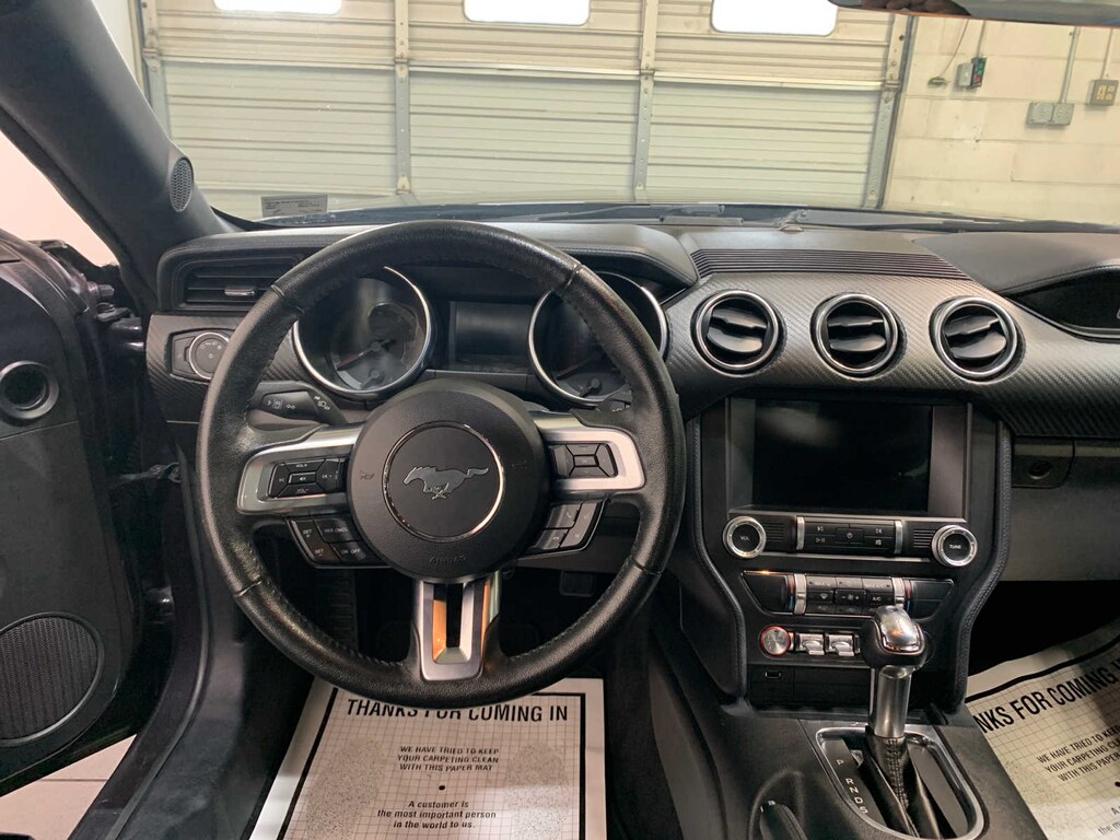 Tires: 235/50ZR18 BSW AS, Dual-Zone Automatic Temperature Control, Wheels: 18" x 8" Machined-Face Aluminum, high-gloss ebony black-painted pockets, Rear Parking Sensors, Selectable Drive Modes w/Toggle Switches, Radio: AM/FM Stereo w/MP3 Player, 9 speaker stereo system (3 speakers), SYNC 3 Communications & Entertainment System, enhanced voice recognition, 8" LCD capacitive touch screen in center stack w/swipe capability, AppLink, 911 Assist, Apple CarPlay® and Android Auto® compatibility and 2 smart charging USB ports, SiriusXM Radio, 3 months prepaid subscription, Service is not available in AK or HI, SiriusXM audio and data services each require a subscription sold separately, or as a package, by SiriusXM Radio Inc, If you decide to continue service after your trial, the subscription plan, 3.15 Limited Slip Rear Axle Ratio, Leather-Wrapped Shift Knob, Tires: 19", Black Blade Decklid Spoiler, Black Mirror Caps, Black Front & Rear Pony Badges, Black Grille, Wheels: 19" x 8.5" Ebony Black-Painted Aluminum, MINI SPARE WHEEL & TIRE. Ford EcoBoost with Dark Matter Gray Metallic exterior and Ebony interior features a 4 Cylinder Engine with 310 HP at 5500 RPM*.