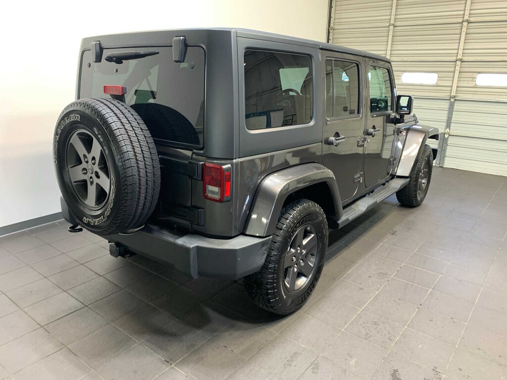 Engine: 3.6L V6 24V VVT, Transmission: 5-Speed Automatic (W5A580), Mid Gloss Granite Crystal Appliques, Freedom Edition Badging, Power Convenience Group, Low Gloss Black Wrangler Decal, Auto Dim Mirror w/Reading Lamp, Front 1-Touch Down Power Windows, Security Alarm, Mid Gloss Granite Crystal Grille, Oscar Mike Badge, Black/Chrome Screws Fuel Filler Door, MOPAR Black Tail Lamp Guards, Deep Tint Sunscreen Windows, MOPAR Coat Hooks and Grab Handles, Silver Interior Accents, Vehicle Information Center, Remote USB Port, Uconnect Voice Command w/Bluetooth®, Leather Wrapped Steering Wheel, Chrome/Leather Wrapped Shift Knob, Tire Pressure Monitoring Display, Iron Gray Interior Accents, Body Color Fender Flares, Power Heated Mirrors, Freedom Package Decals, Power Locks, Remote Keyless Entry, Tip Start, Hill Descent Control, 115V Auxiliary Power Outlet, Alpine 9-Speaker w/All Weather Subwoofer, Amplified 552W 9 speaker, including subwoofer, Freedom Panel Storage Bag, Rear Window Defroster, Rear Window Wiper/Washer, Tinted Rear Quarter & Liftgate Windows, Delete Sunrider Soft Top, Class II Receiver Hitch, 3.73 Rear Axle Ratio, Trailer Tow w/4-Pin Connector Wiring, REMOTE START SYSTEM, For More Info Call 888-539-7474, (STD). Jeep Freedom with Granite Crystal Metallic Clearcoat exterior and Black interior features a V6 Cylinder Engine with 285 HP at 6400 RPM*.