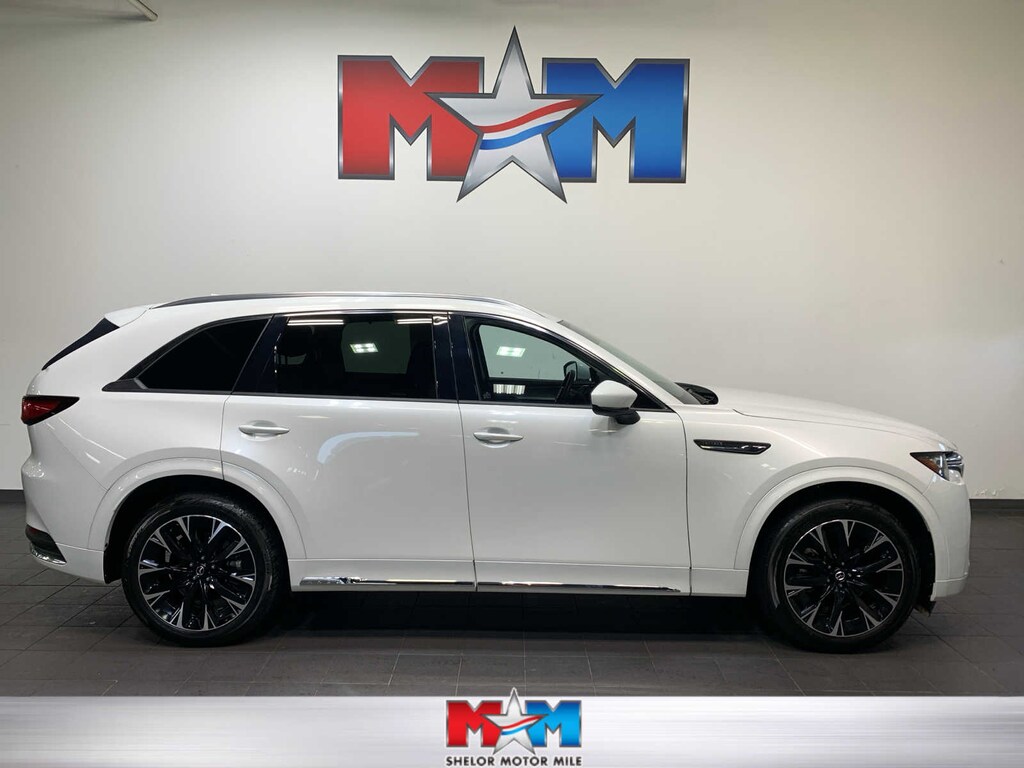 Leather Seating, Third Row Seat, Navigation, Sunroof, Panoramic Roof, Power Liftgate, Heated Driver Seat, Back-Up Camera, Premium Sound System, iPod/MP3 Input, Onboard Communications System, Aluminum Wheels, Keyless Start, Dual Zone A/C, Blind Spot Monitor Rear Spoiler, MP3 Player, Rear Air, Satellite Radio, Remote Trunk Release. Mazda CX-90 3.3 Turbo S with Rhodium White Premium exterior and Black interior features a Straight 6 Cylinder Engine with 340 HP at 5000 RPM*.