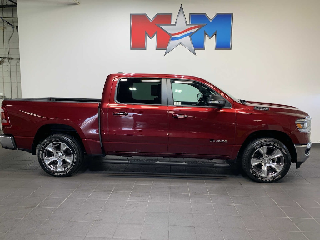 Google Android Auto®, Radio: Uconnect 4 w/8.4" Display, Rear Window Defroster, Integrated Center Stack Radio, ParkSense Front/Rear Park Assist w/Stop, Rear View Auto Dim Mirror, Power Adjustable Pedals, For More Info, Call 800-643-2112, Rear Power Sliding Window, Rear Dome w/On/Off Switch Lamp, Glove Box Lamp, Power 4-Way Driver Lumbar Adjust, Power 8-Way Driver Seat, Auto Dim Exterior Driver Mirror, Heated Front Seats, Heated Steering Wheel, 8.4" Touchscreen Display, Foam Bottle Insert (Door Trim Panel), Class IV Receiver Hitch, Dampened Tailgate, Security Alarm, Power Heated Fold Away Mirrors, Apple CarPlay®, Big Horn IP Badge, Remote Start System, SiriusXM Satellite Radio, Exterior Mirrors w/Supplemental Signals, Exterior Mirrors Courtesy Lamps, Air, Active Noise Control System, 180 Amp Alternator, Heavy Duty Engine Cooling, GVWR: 7,100 lbs, Dual Rear Exhaust w/Bright Tips, Hemi Badge, Front LED Fog Lamps, LED Reflector Headlamps, LED Taillamps, Power 8-Way Driver Seat, Center Console Parts Module, Bucket Seats, Manual Adjust 4-Way Front Passenger Seat, Full Length Floor Console, Power 4-Way Driver Lumbar Adjust, Engine: 5.7L V8 HEMI MDS VVT, Transmission: 8-Speed Automatic (8HP75), Steering Wheel Mounted Audio Controls, TRANSMISSION: 8-SPEED AUTOMATIC (8HP75). Ram Big Horn/Lone Star with Delmonico Red Pearlcoat exterior and Black interior features a 8 Cylinder Engine with 305 HP at 6400 RPM*.